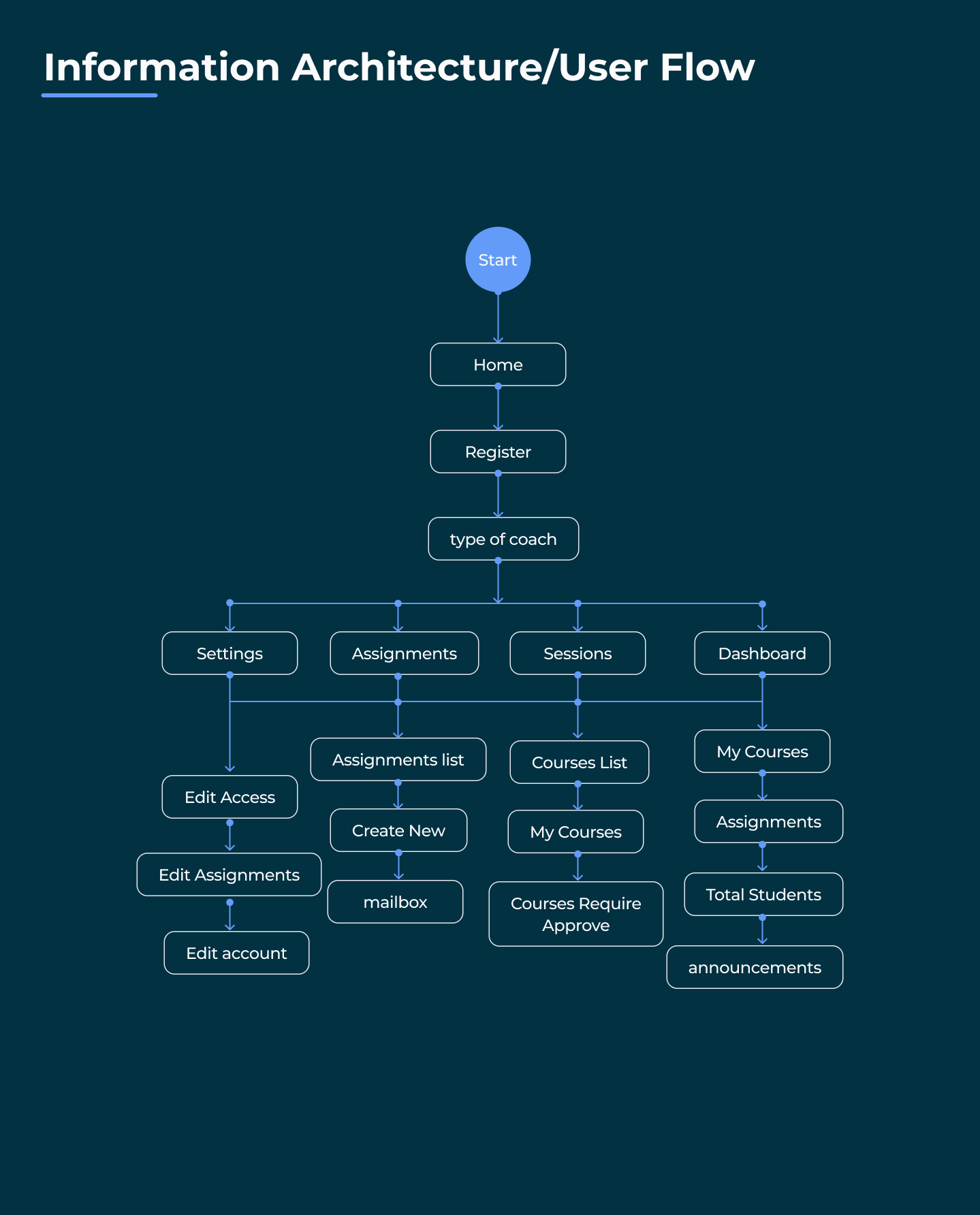 Delivered a complete instructor-focused dashboard UI with core workflows mapped through IA and user flows.