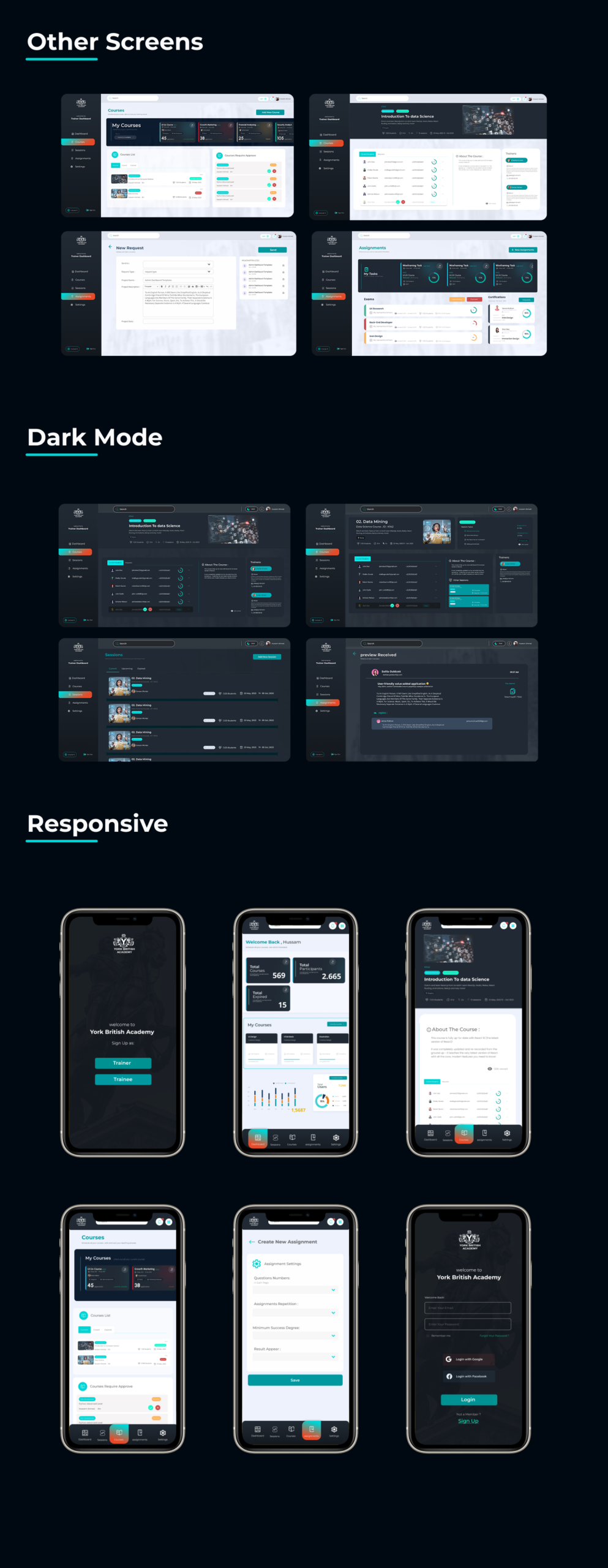 York British Academy needed a modern digital experience to support its online education model. The project included a public-facing website and an admin dashboard designed for instructors to manage courses, assignments, student progress, and communication—within a British-education context. The goal was to make day-to-day teaching workflows faster, clearer, and easier to track.